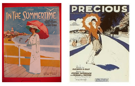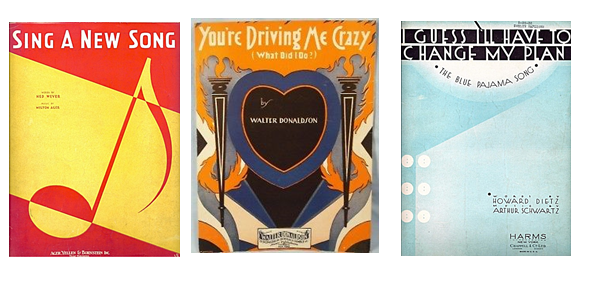 Just as you can date an album by the style of its cover art, so you can date sheet music by what you see on the cover. Check out these two ladies in similar poses, one from the teens and the other from the twenties: